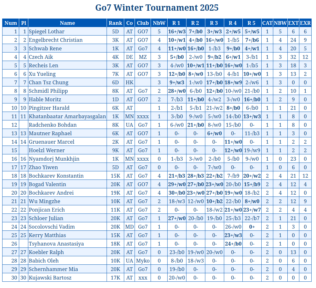 Beim Winterturnier im Go7 traten letztes Wochenende ganze 30 mutige Spieler:innen an – damit ist es unser beliebtestes saisonales Turnier des Jahres!